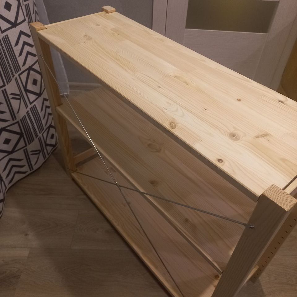 Увидела стеллаж на сайте и влюбилась))) бывает так, что увидишь вещь, определишь ей место и уже не представляешь ничего другого. Стеллаж деревянный.